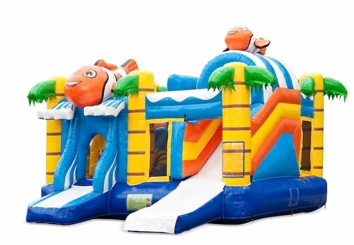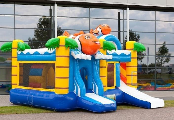 De springkussen heeft veel speelmogelijkheden met leuke objecten op het springvlak en een coole glijbaan. De Multiplay Clownvis heeft opvallende 3D objecten op het springkussen en is passend bij het thema vormgegeven. De kinderen komen langs allerlei afbeeldingen en kleurrijke obstakels, wat het thema helemaal compleet maakt. Dit springkussen in het thema clownvis maakt het feest van jouw klant helemaal compleet!